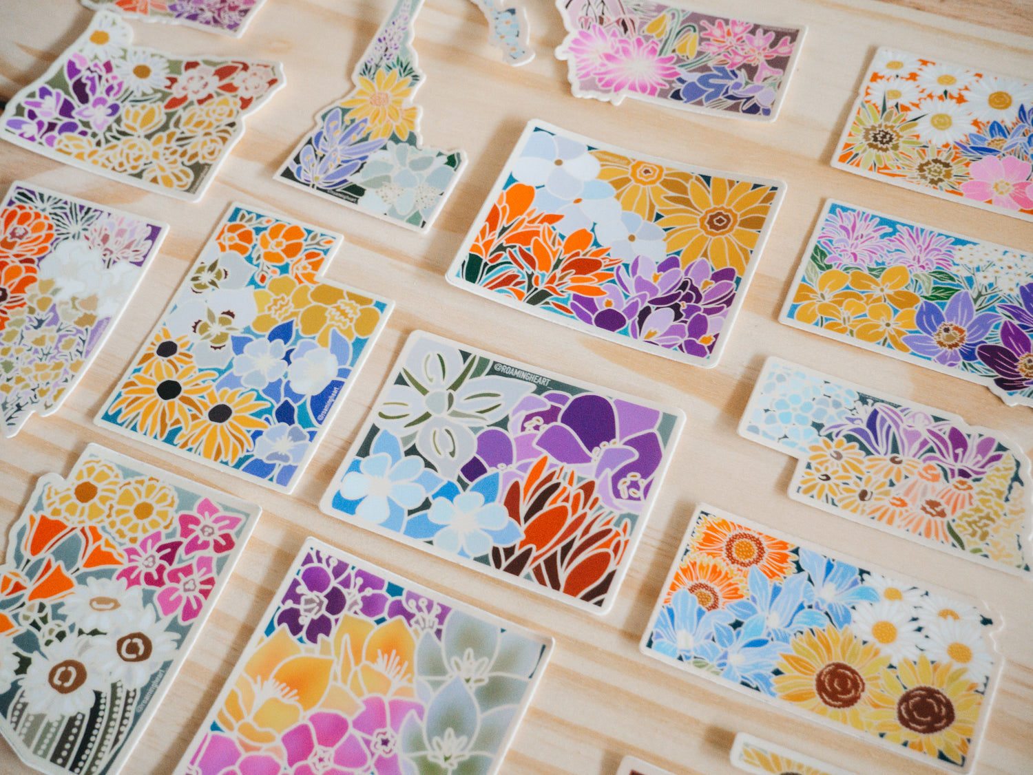 Our state stickers highlight each state's native & vibrant wildflowers. The perfect way to commemorate a trip or take a piece of home with you wherever you wander next.