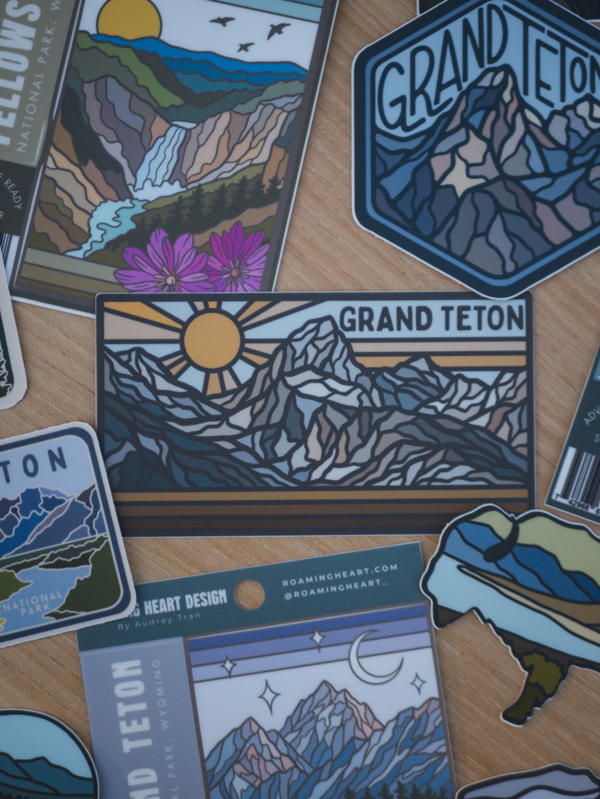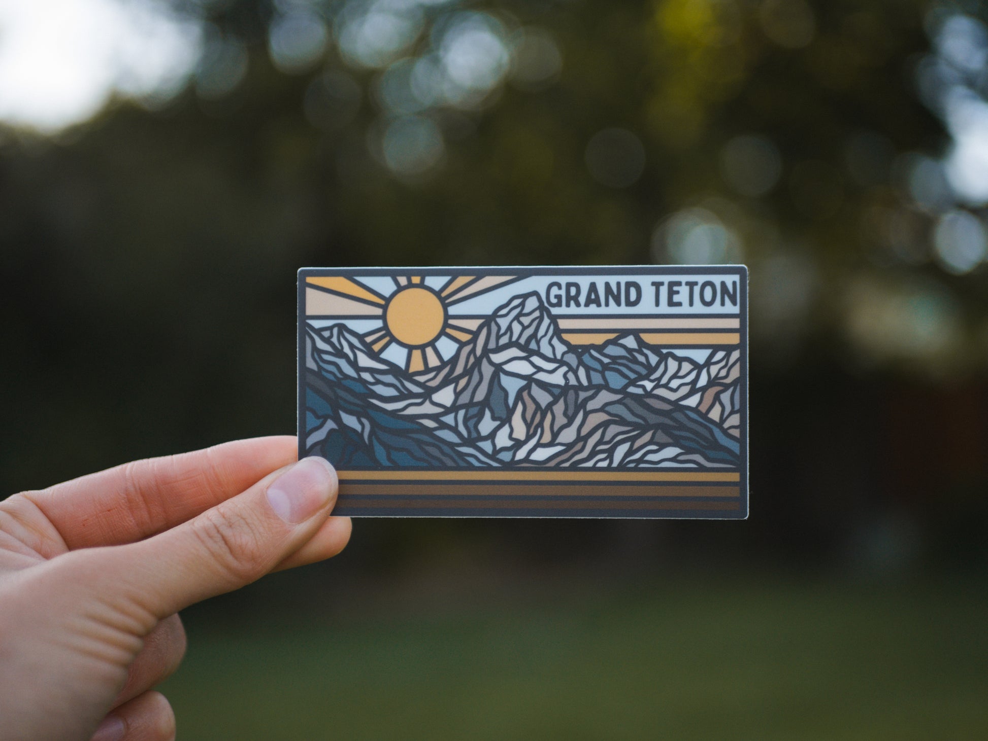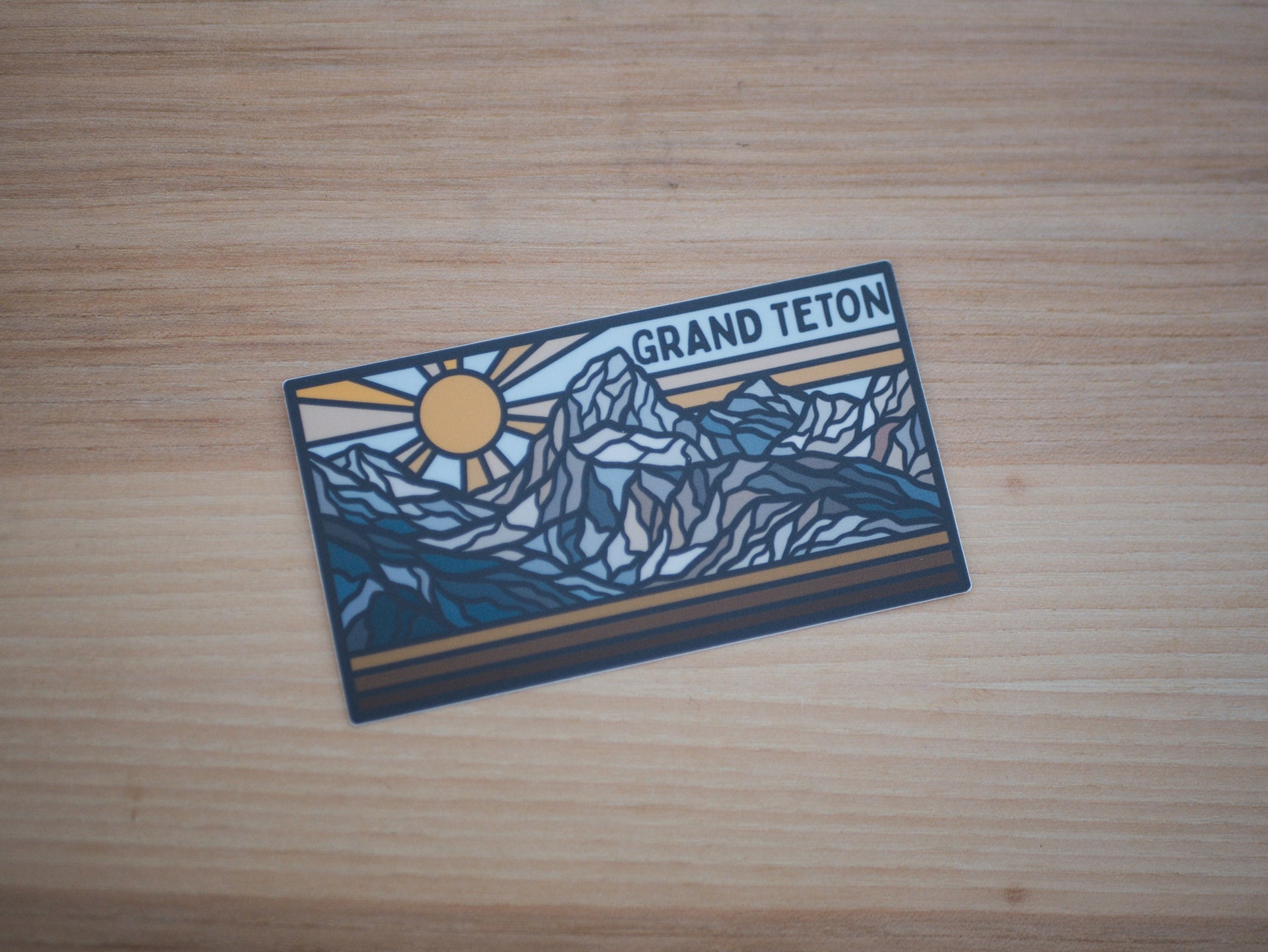This retro-inspired sticker features a bold, graphic sunset rising over the jagged peaks of the Teton Range. With warm tones and clean lines, the design captures the striking silhouette of the mountains at golden hour—timeless, iconic, and unmistakably Grand Teton. Whether you've stood beside Jackson Lake or dreamed of alpine trails, this sticker brings that mountain magic to your everyday gear.