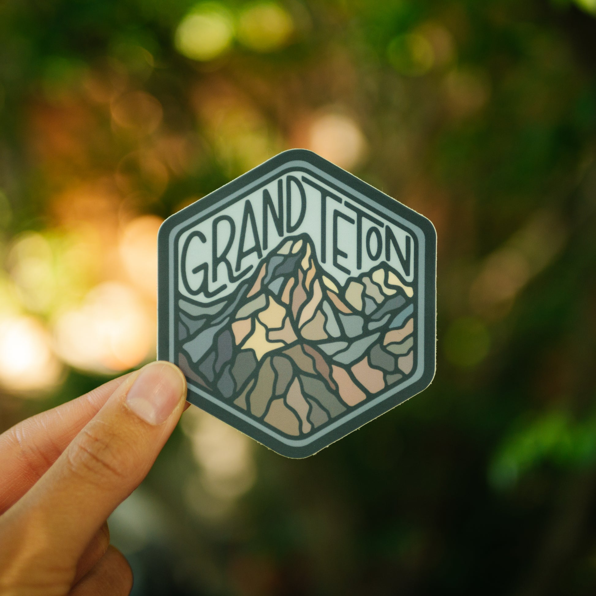 This Grand Teton sticker is inspired by the beauty of the Teton Range, with colors reflecting the setting sunlight on Grand Teton peak. This sticker is a great fit for customers who want to remember their adventures in or near Grand Teton National Park!