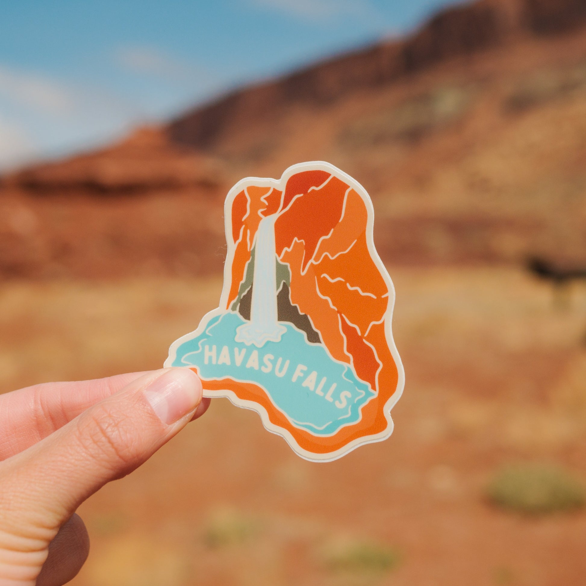 Vibrant turquoise water and red rock cliffs—this sticker captures the magic of Havasu Falls in all its desert oasis glory. Die cut to the shape of the design, it’s a bold little tribute to one of the Southwest’s most iconic yet hidden waterfalls. Durable and waterproof, it's made to go wherever your adventures take you.