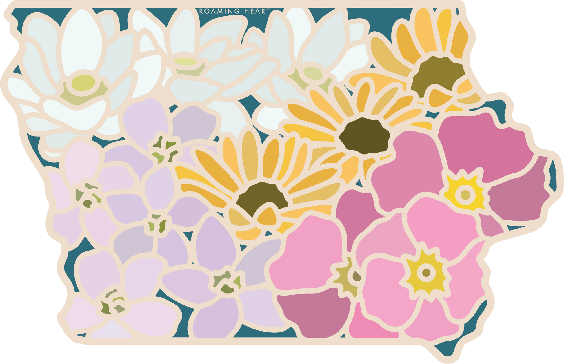 This sticker uniquely shows the beauty of Iowa's native wildflowers, including the state flower, the Prairie Rose! Every wildflower state sticker we design is unique to its own, illustrating wildflowers unique to its location.