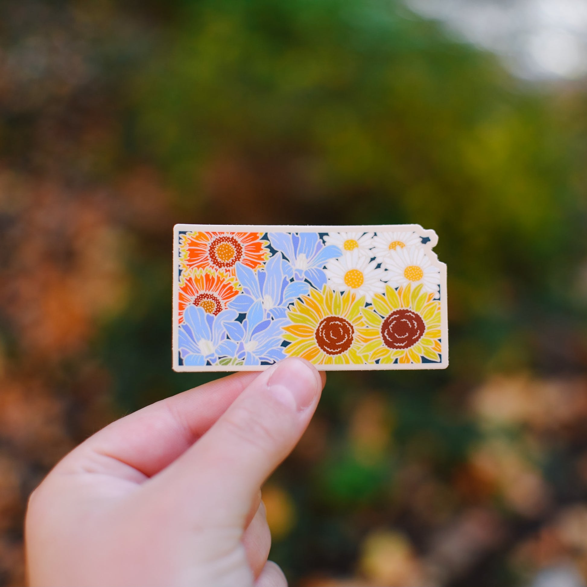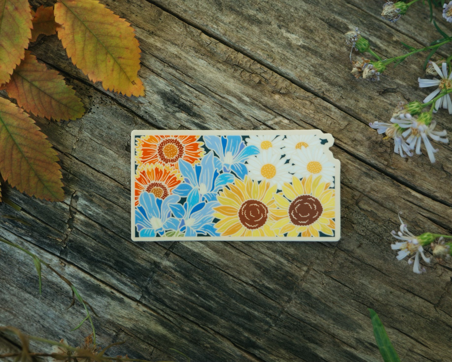 This sticker uniquely shows the beauty of Kansas's native wildflowers, including the state flower, the Sunflower! Every wildflower state sticker we design is unique to its own, illustrating wildflowers unique to its location.
