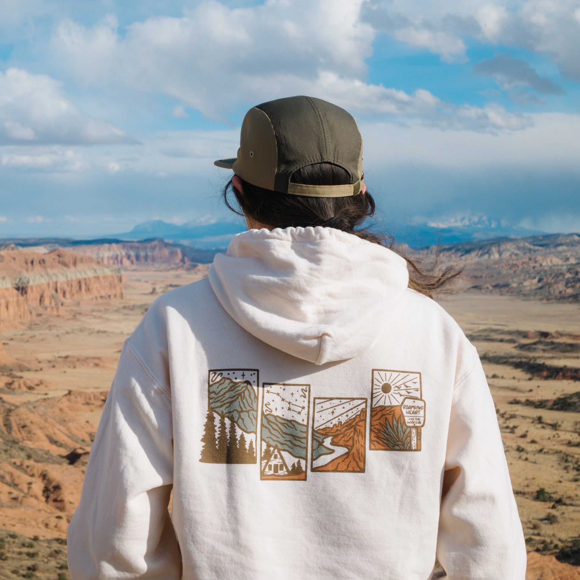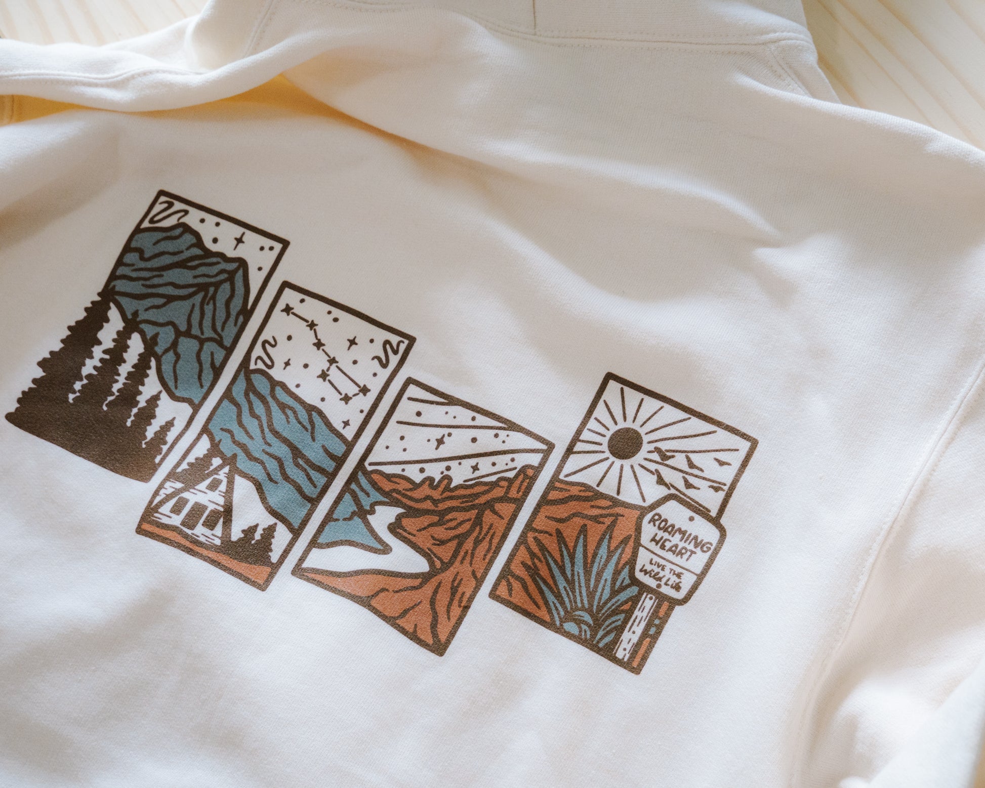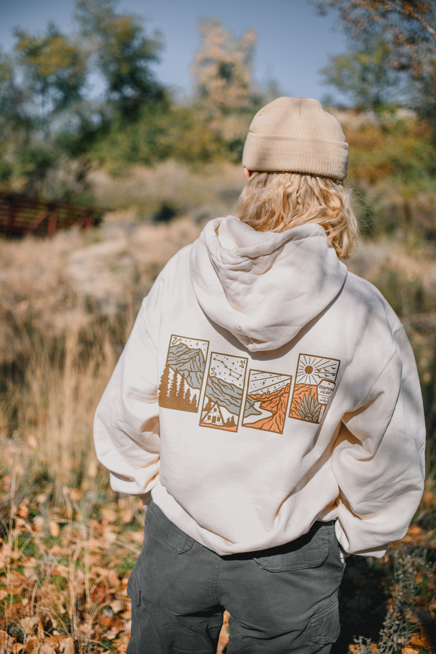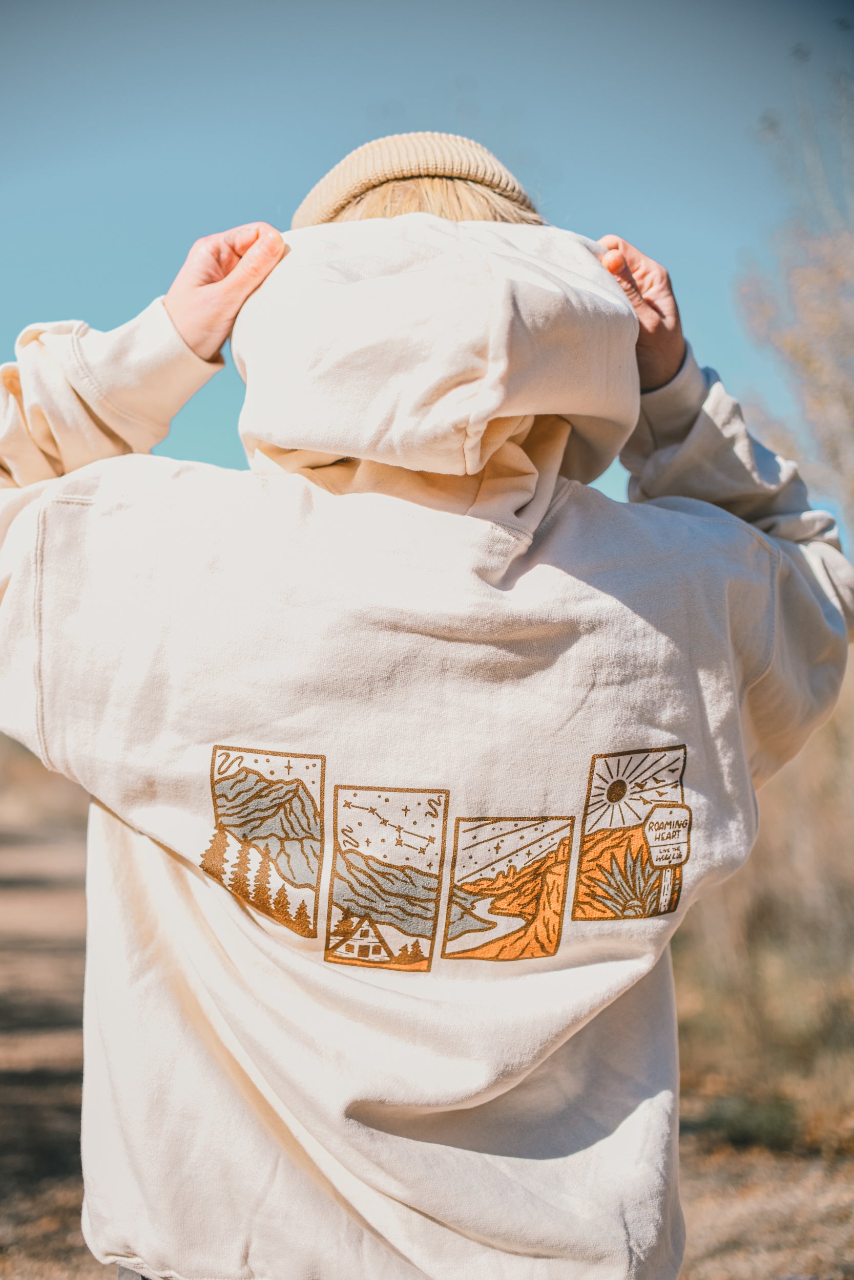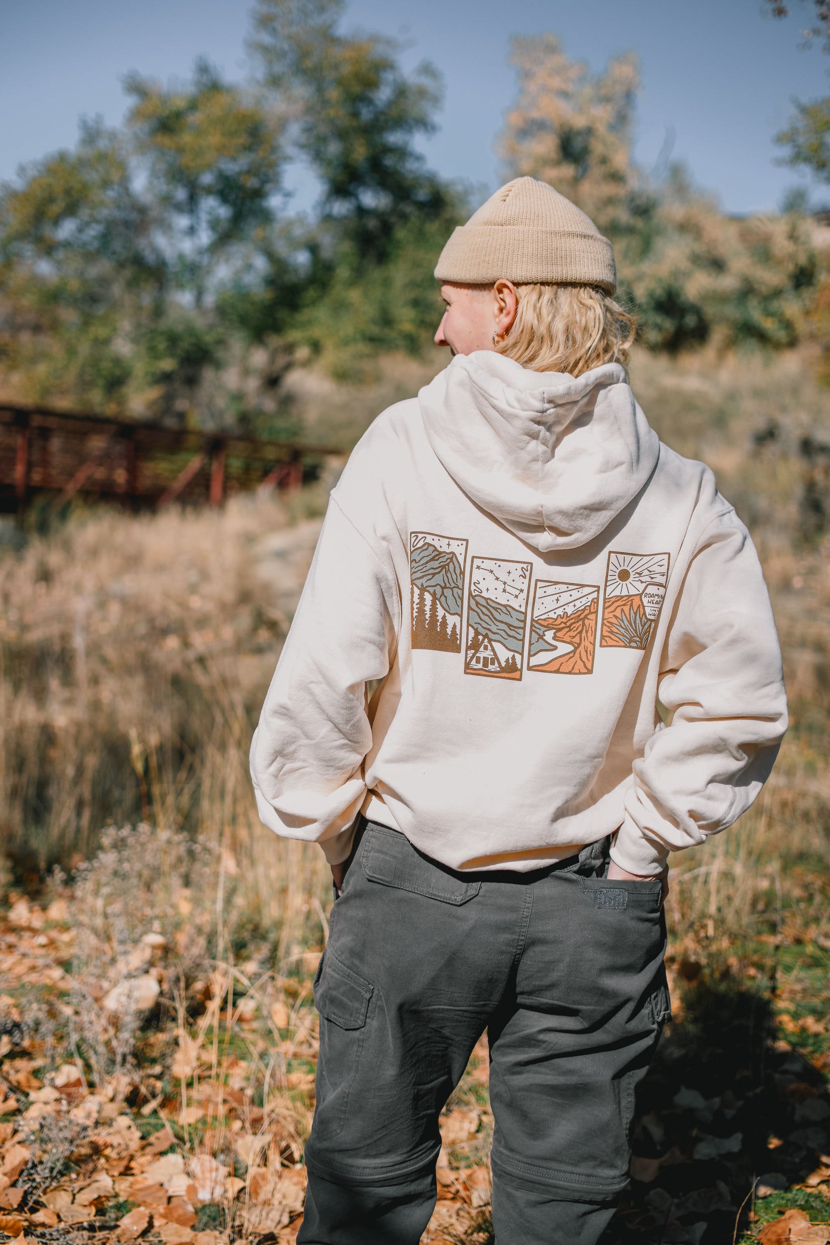 Cozy up and head out with this ultra-soft fleece hoodie, featuring a 4-panel design that captures the spirit of desert trails, mountain peaks, and the open road. A screenprinted trail sign invites you to “live the wild life,” with a 2-color print on the front and a bold 3-color scene on the back. It’s a wearable reminder to choose the path that leads outside.