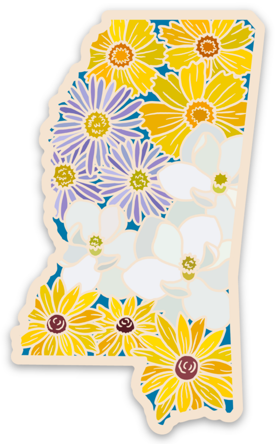 This sticker uniquely shows the beauty of Mississippi's native wildflowers, including the state flower, the Coreopsis! Every wildflower state sticker we design is unique to its own, illustrating wildflowers unique to its location.