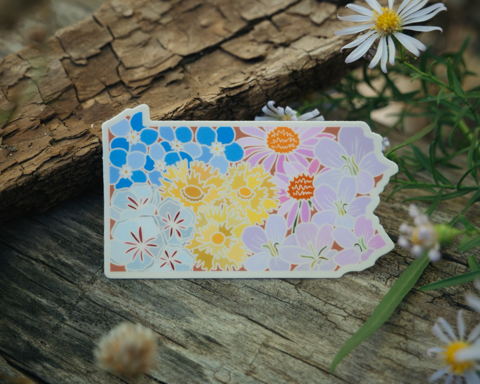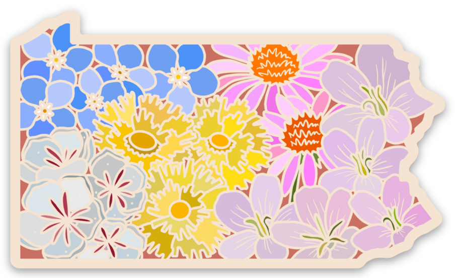This sticker uniquely shows the beauty of Pennsylvania's native wildflowers, including the state flower, the Mountain Laurel! Every wildflower state sticker we design is unique to its own, illustrating wildflowers unique to its location.