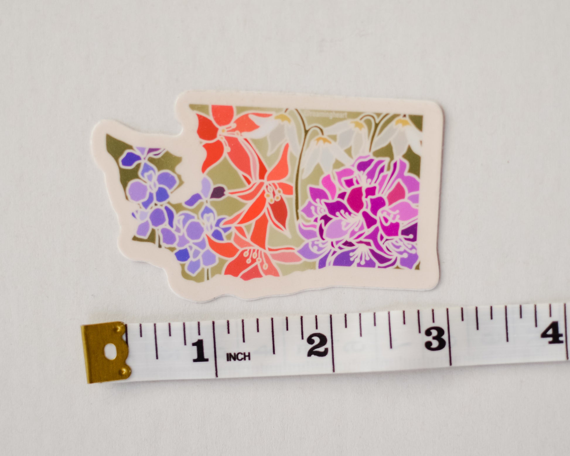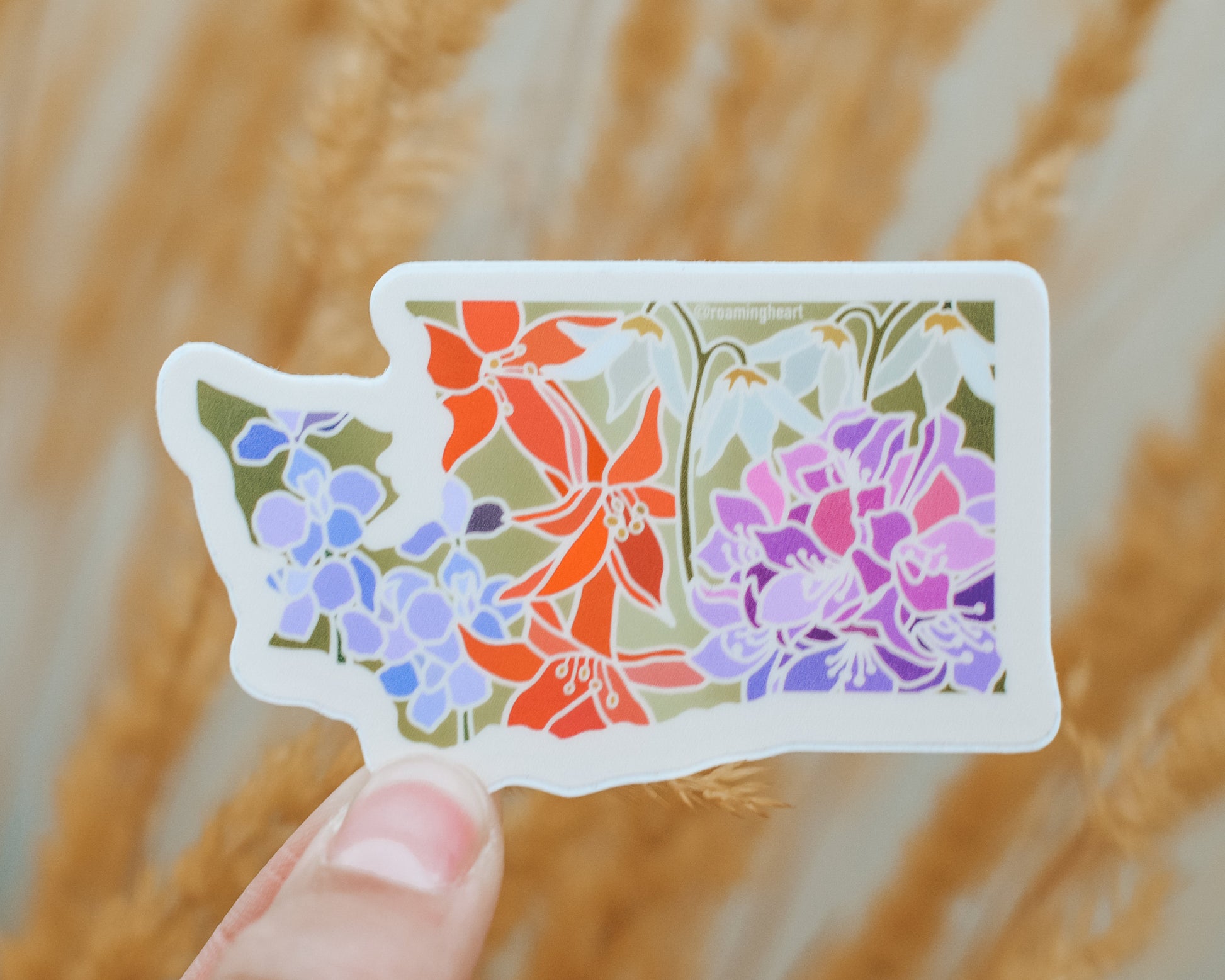 This Washington State Wildflower sticker is inspired by the beautiful wildflowers that grow throughout the state and features the beautiful state flower, Pacific Rhododenron.