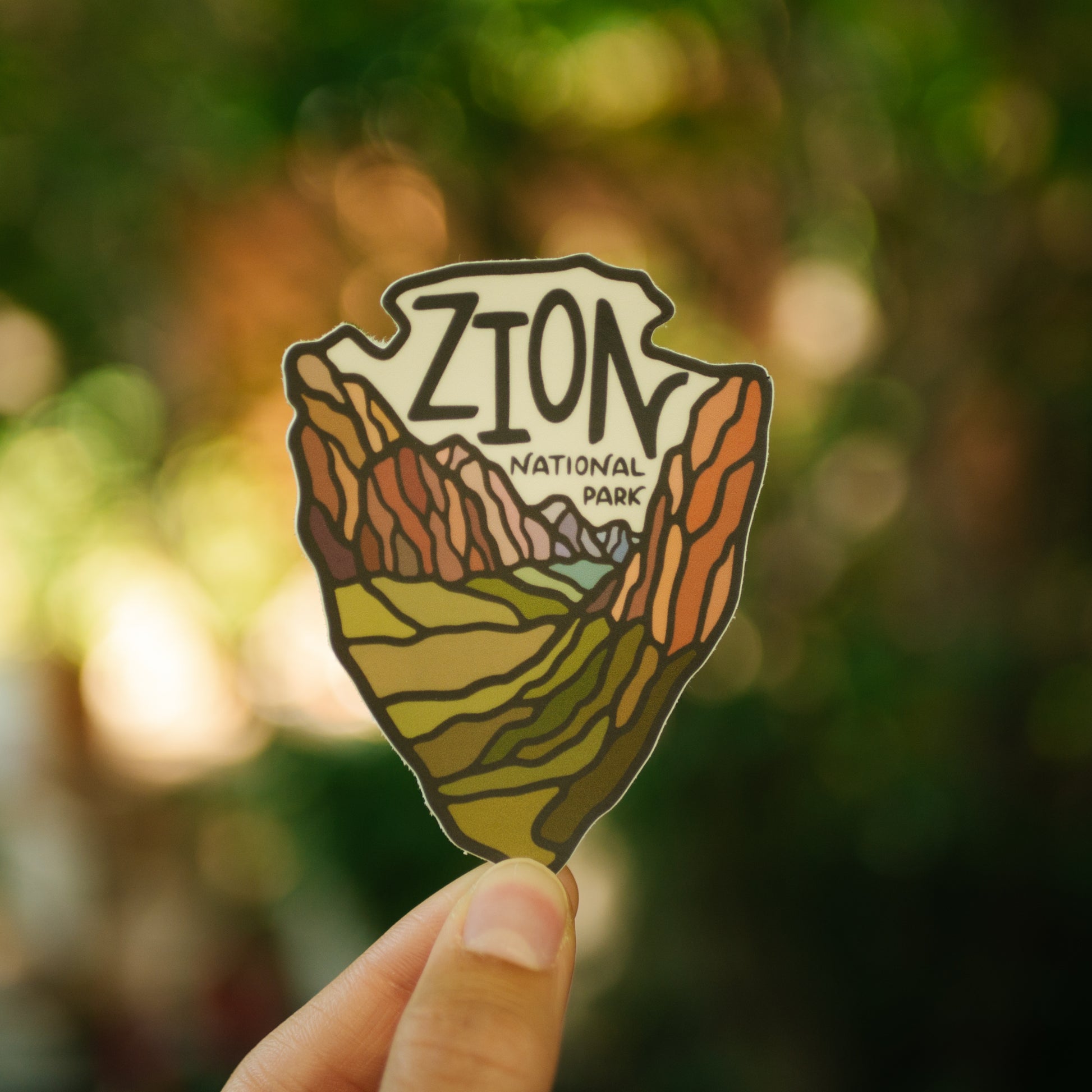 This Zion National Park sticker is inspired by the colorful views of Zion Canyon, inside the shape of the National Park Service's arrowhead logo. I designed this sticker while on the road, camping inside of Zion National Park. This sticker is true to its namesake and carries with it a sense of adventure that travelers and park lovers alike experience while in the park.